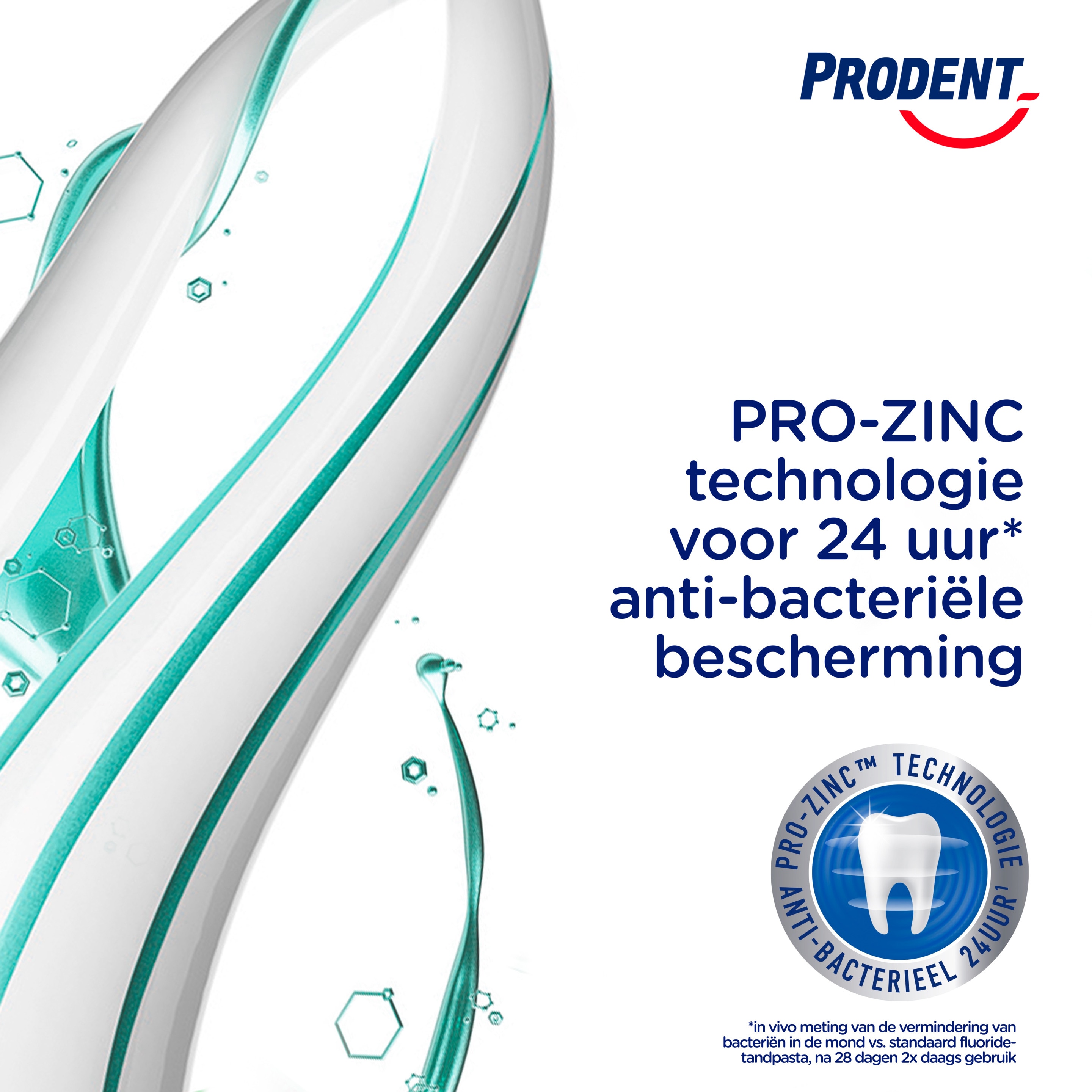 Dankzij het prebiotische effect versterkt de PROZINC -technologie van deze tandpasta de natuurlijke afweer van uw mond door goede bacteriën te verhogen en slechte bacteriën te verminderen.